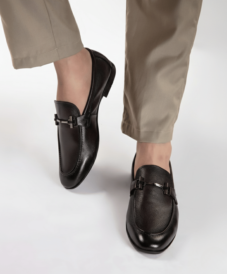 Pebble Grain leather with Leather Sole (Article 500-Black)